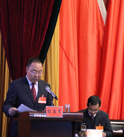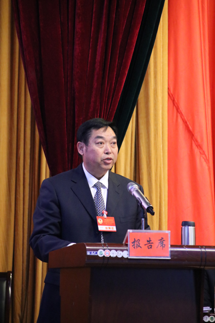 县政协主席叶忠华代表政协南华县第九届委员会向大会作工作报告。
