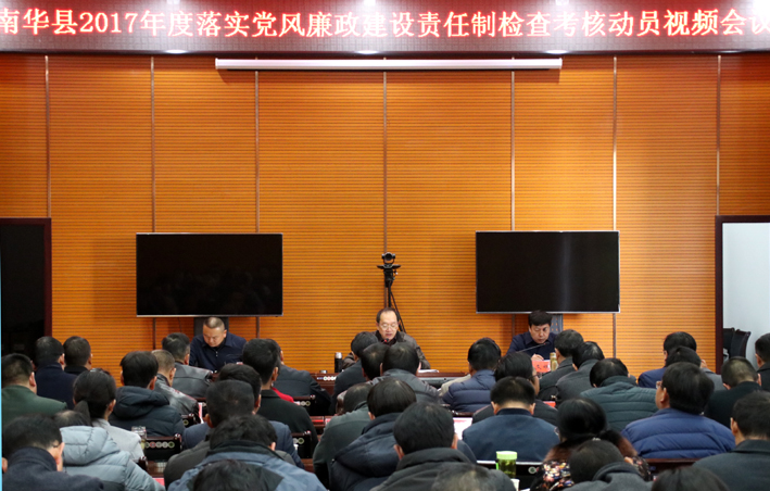近日,我县召开2017年落实党风廉政建设责任制检查考核动员视频会议,要求全县各级各部门要提高思想认识,牢记职责使命,以检查考核为契机推动全面从严治党向纵深发展。