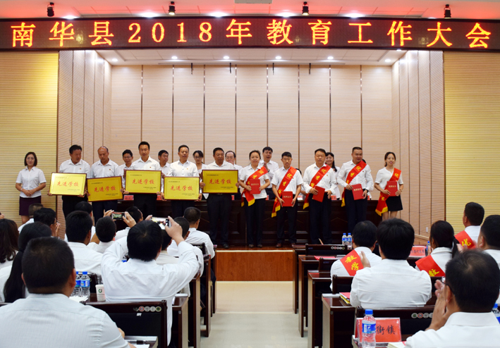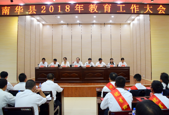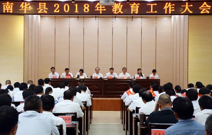 李云升在会上作了题为《攻坚克难 比学赶超 以改革精神全力写好南华教育“奋进之笔”》的重要讲话。李云升指出,教育是公益事业,也是民心工程;教育是责任,更是良知。近年来,在各级党委、政府的关心支持下,县委、县政府牢固树立教育为本的理念,紧紧围绕“公平优质”教育目标,始终把教育摆在优先发展的战略地位,持续加强领导、加大投入,不断深化改革、强化管理,努力激发活力、提升质量,全县教育资源不断优化,基础设施不断改善,管理机制不断健全,办学质量不断提高,有力促进了全县教育均衡发展、科学发展、内涵发展。教育系统的党建工作更加坚实、办学条件大为改善、教育发展获得感普遍增强、教师队伍建设不断加强、教育改革深入推进,全县教育事业发展呈现出蓬勃向上的良好局面。截至目前,我县在改善办学条件方面累计投入资金8.9亿元,改扩建义务教育学校165所,新建校舍面积7.9万平方米。2017至2018学年,城乡、校际间交流轮岗校长6名、教师178名,从2017年1月起,按照乡村学校的生活和工作条件,分四类地区,乡村教师每人每月发放220元至820元不等的乡村教师生活补助,有效调动了乡村教师的工作积极性。