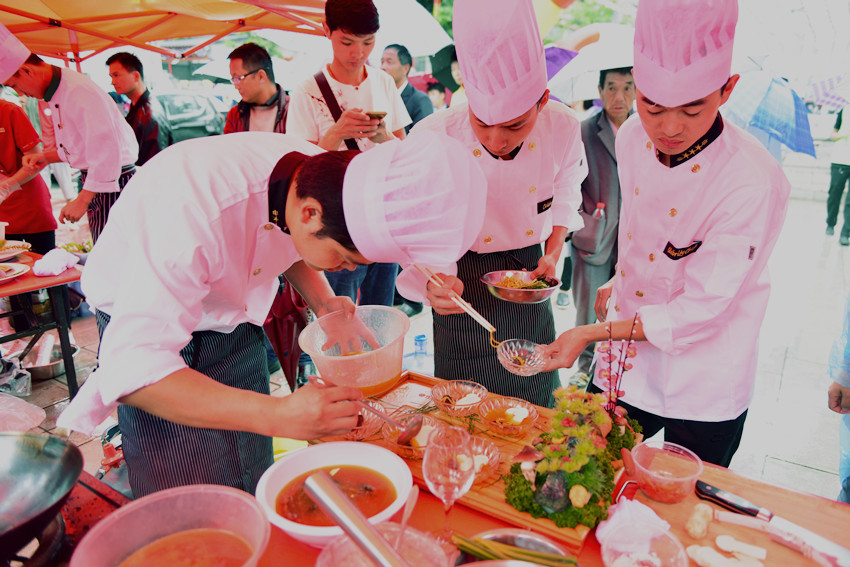 经过连日来的烹饪比拼,共有7家餐饮企业的15道菜品入围决赛并进行现场竞技。省州餐饮美食协会负责人及部分国家级烹饪美食大师到场观摩比赛并进行现场打分、现场点评。