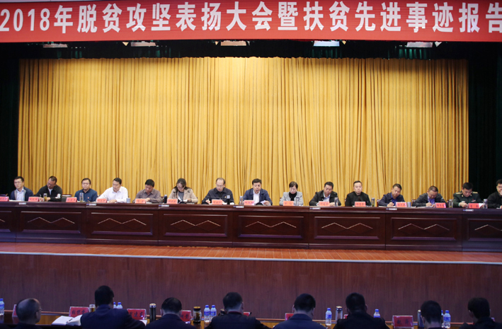 近日,我县召开2018年脱贫攻坚表扬大会暨扶贫先进事迹报告会,表扬先进典型,弘扬脱贫攻坚正能量,动员一切社会力量参与脱贫攻坚,坚决打赢脱贫攻坚战。会议强调:全县上下要以脱贫攻坚工作中涌现出来的先进典型为榜样,始终保持不松劲、不停步、不懈怠的攻坚态势,众志成城开拓进取,不折不扣坚决兑现如期脱贫摘帽“军令状”。