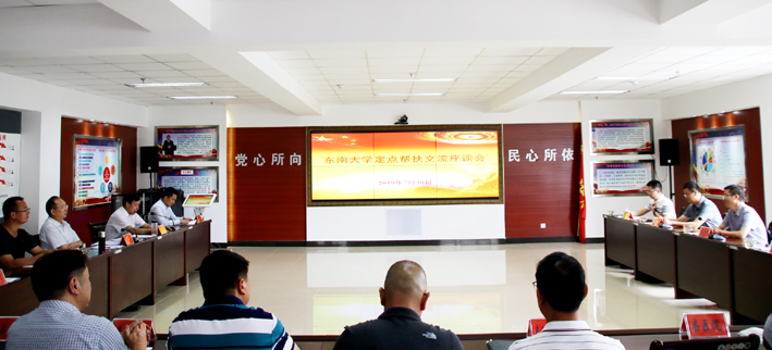 东南大学校长、中国工程院院士张广军,东南大学常务副校长王保平等校方领导和县委书记李云升,县委副书记、县人民政府县长何文明,县委常委、县委办公室主任何文育,县领导邱峰、陈贵富参加定点帮扶交流座谈。