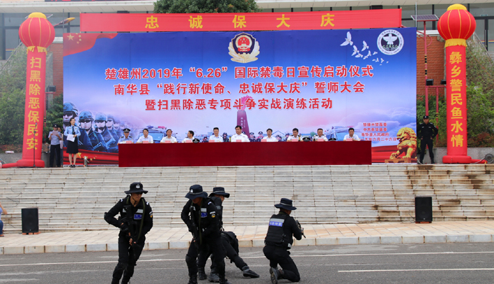 在第32个“6.26”国际禁毒日,为全面展示禁毒成果,加大毒品预防教育和禁毒宣传工作力度,增强全民禁毒意识和抵制毒品能力,构建和谐平安南华。6月26日上午,我县举行以“健康人生,绿色无毒”为主题的2019年“6.26”国际禁毒日宣传活动启动仪式。