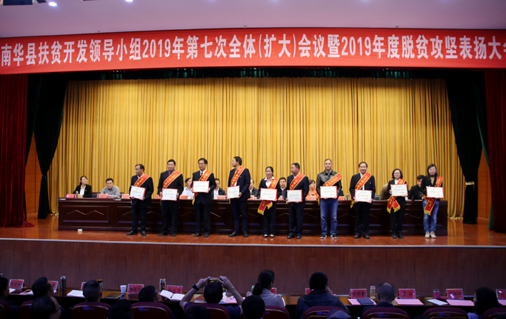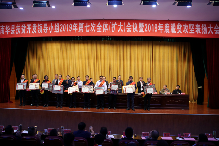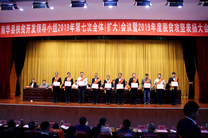 鲁泽强宣读了《南华县扶贫开发领导小组关于表扬2019年全县脱贫攻坚先进集体和先进个人的通报》。