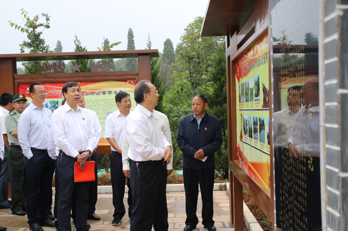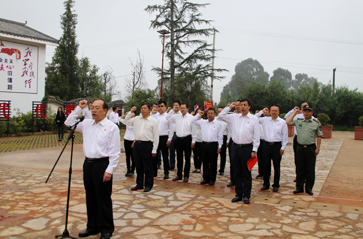 在鹦鹉山革命老区县红色文化广场,全体县处级领导奏唱了中华人民共和国国歌;全体党员重温入党誓词,并听取我县革命老区县红色文化广场建设情况及相关党史。