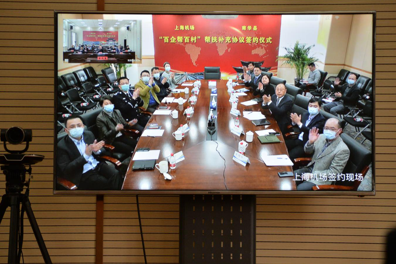 为巩固拓展脱贫攻坚成果,推进乡村振兴,根据党中央、国务院有关指示和要求,2月7日下午,上海国际机场与南华县政府《帮扶协议》视频续签仪式在上海、南华两地连线举行。