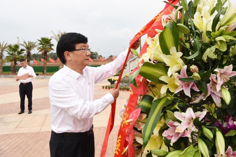 州委书记杨斌率领州委常委班子成员来到南华一中和南华县两旗海湿地公园广场,瞻仰镇南师范党支部纪念碑和张舫烈士铜像,聆听革命老区党组织、党领导的人民武装、人民政权的发展历程介绍和张舫烈士革命事迹,向革命先烈敬献花篮,重温入党誓词,共同缅怀先烈,追忆红色历史。