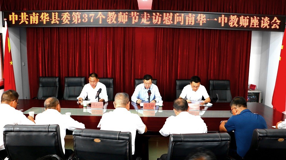 2021年9月7日,在第37个教师节来临之际,中共南华县委书记梁文林在县委常委、县委办公室主任周海章,县教育体育局局长周正国的陪同下,深入龙川小学、城区幼儿园、南华一中走访慰问教师。每到一所学校,梁书记都详细了解学校各项工作情况,对教职员工致以节日的问候,代表县委、县人民政府向教师送上节日慰问金,并与教师亲切座谈。
