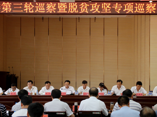 近日,州委第三轮巡察暨脱贫攻坚专项巡察第一巡察组进驻我县开展巡察工作,我县召开脱贫攻坚专题汇报会,要求全县各级各部门要学习贯彻习近平总书记关于脱贫攻坚系列重要讲话精神,提高政治站位,立足政治巡察,突出脱贫攻坚政治责任落实,把全面从严治党要求贯穿于巡察工作全过程,发现问题,形成震慑,为全面打赢脱贫攻坚战提供坚强的纪律保证。