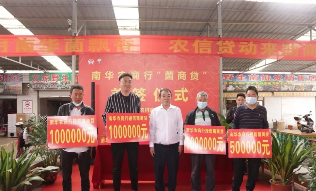 随着野生菌市场的火热,为持续优化野生菌金融营商环境,南华县工商联和南华农商行携手推出了“菌商贷”信贷产品,并在野生菌交易市场举行了首签仪式,信贷金额从5万元到500万元不等。首签现场,“菌商贷”首位获贷菌商陈平激动地说:“作为个体工商户,经营野生菌20余年,从来没有敢想能从银行借到100万元贷款,此次的‘菌商贷’真正解了我们菌商的燃眉之急。今年雨水好,野生菌上市时间也早,但因为手头资金紧张,不敢大批量收购,错过了头茬福利,现在有了百万贷款,能在今年的野生菌市场上好好有一番作为了。”