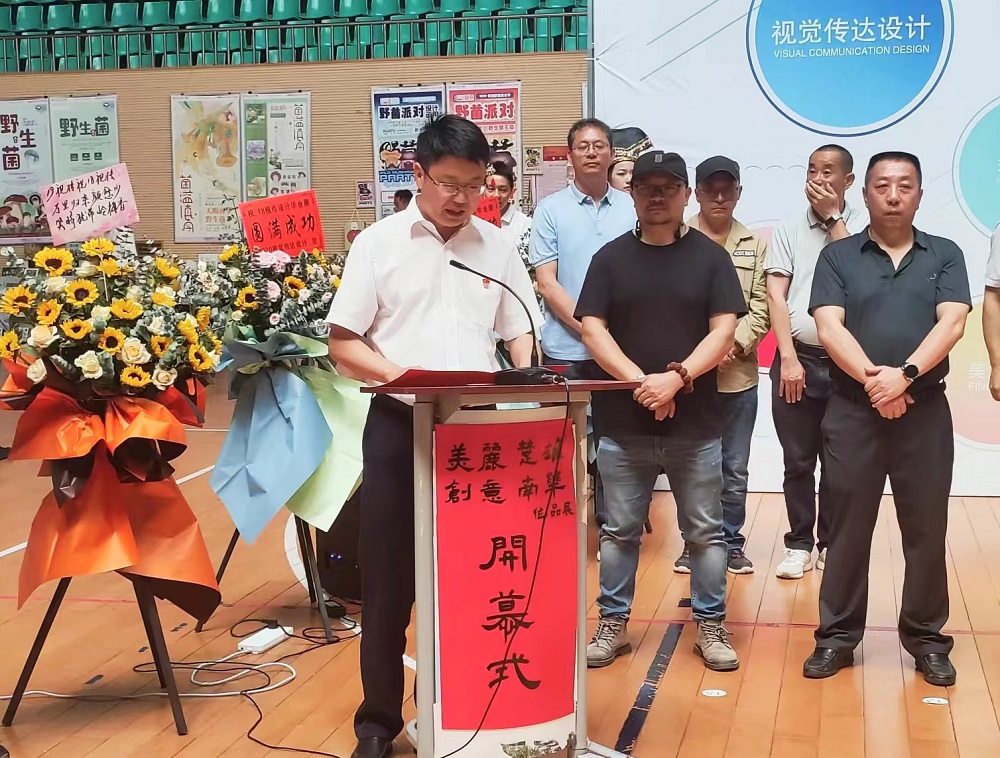 楚雄师范学院党委书记何伟全宣布“美丽楚雄 创意南华”主题文化创意创作设计作品展开展。