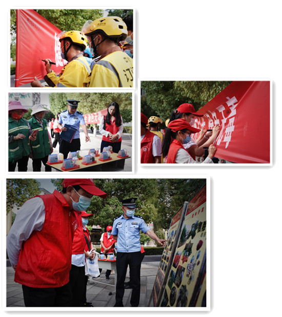 活动现场,参与宣传的禁毒志愿者通过悬挂横幅、展出宣传展板、发放宣传资料、现场讲解等形式,向驻足观看禁毒宣传展板的群众发放禁毒宣传资料,耐心细致地向群众介绍毒品知识,科学阐释毒品概念,广泛宣传毒品滥用危害,解答群众咨询和疑问,教育群众增强拒毒防毒意识,自觉抵制毒品的诱惑,大力宣传毒品违法犯罪举报奖励办法,积极动员广大市民和社会力量参与禁毒人民战争,呵护美好家园,营造深化禁毒人民战争的浓厚宣传氛围。