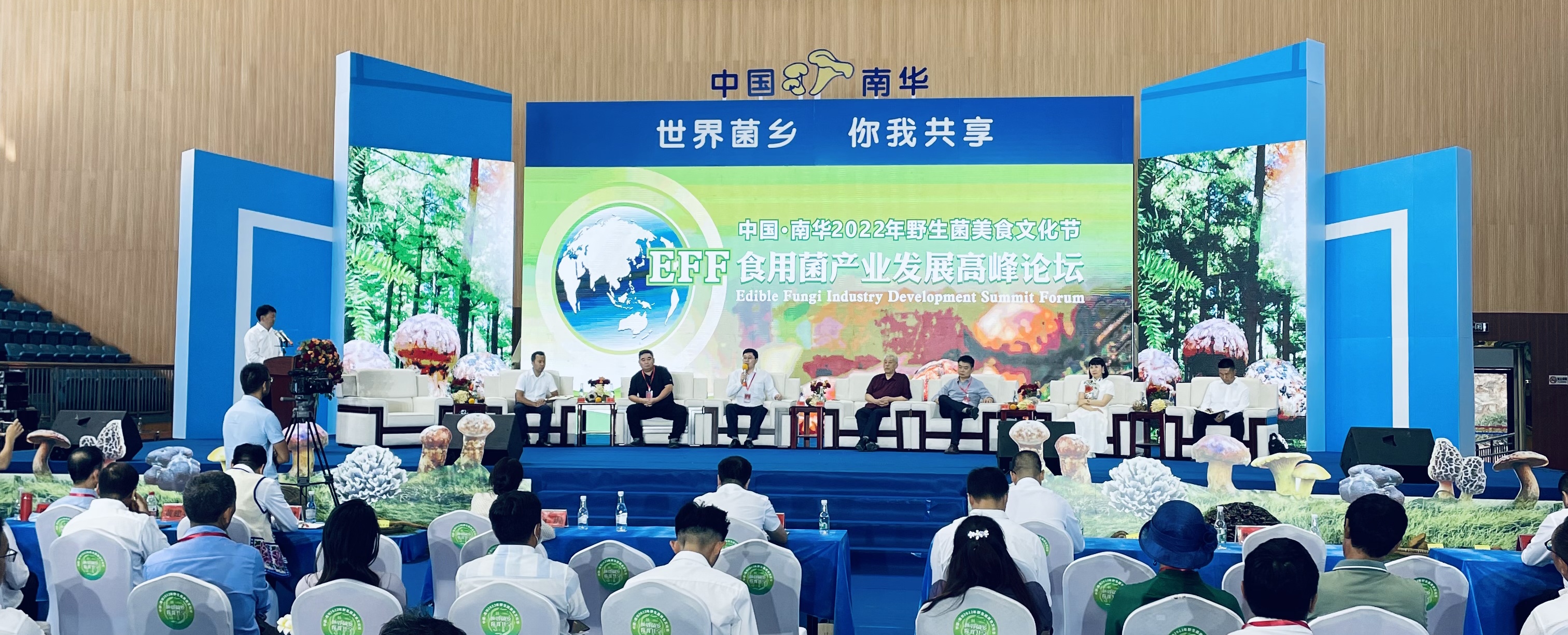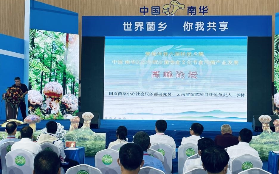 在《中国·南华2022年野生菌美食文化节食用菌产业发展高峰论坛》会议上,中华全国供销合作总社昆明食用菌研究所所长、研究员孙达锋,上海食用菌研究所研究员黄建春,国家菌草中心社会服务部研究员、云南省菌草驻地负责人李林,云南省食用菌协会黑木耳分会会长、昆明食用菌产业协会会长姚远等6位专家分别围绕《云南食用菌产业发展思考》等主题进行了主旨演讲;在南华从事食用菌种植和加工的企业家们分别与几位专家围绕“云菌”产业发展进行探讨,大家一起交流经验、拓宽思路,为南华县野生菌产业高质量发展把脉诊断、建言献策,助推南华县野生菌“一县一业”高质量快速发展。