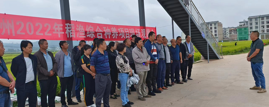 现场会上,县农业农村局对该项目实施情况作了简要介绍,县水产技术推广站对近100天的稻渔综合种养从田间工程、鱼苗投放、养殖管理,实践过程中的技术要点和取得的经验作了分享和交流,并到种苗场和养殖田块进行现场观摩。