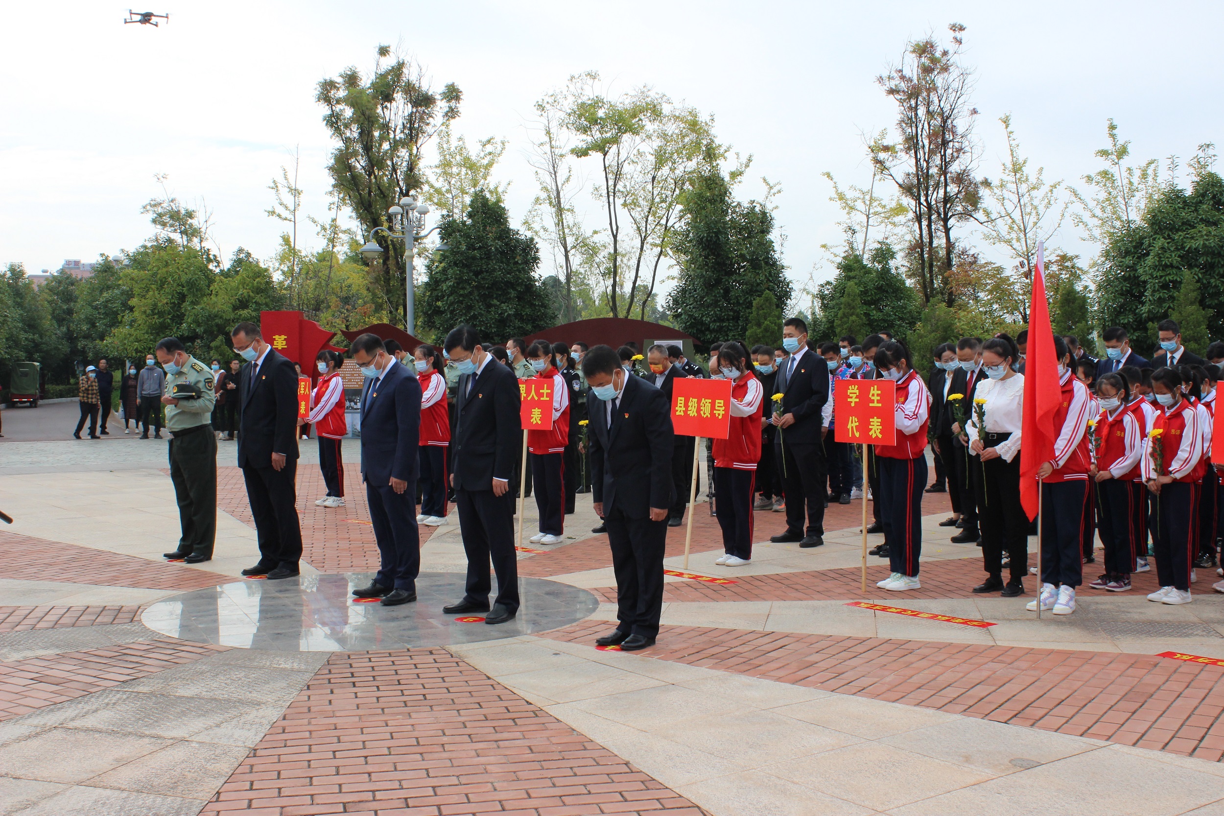 随后,参加活动的县领导和各界代表依次瞻仰烈士纪念碑,并向烈士敬献鲜花,追忆烈士们的英雄事迹,向为赢得民族独立和人民解放矢志不渝、前赴后继的革命先烈和为实现国家富强和人民幸福艰苦奋斗、无私奉献的人民英雄表示深切怀念和崇高敬意。