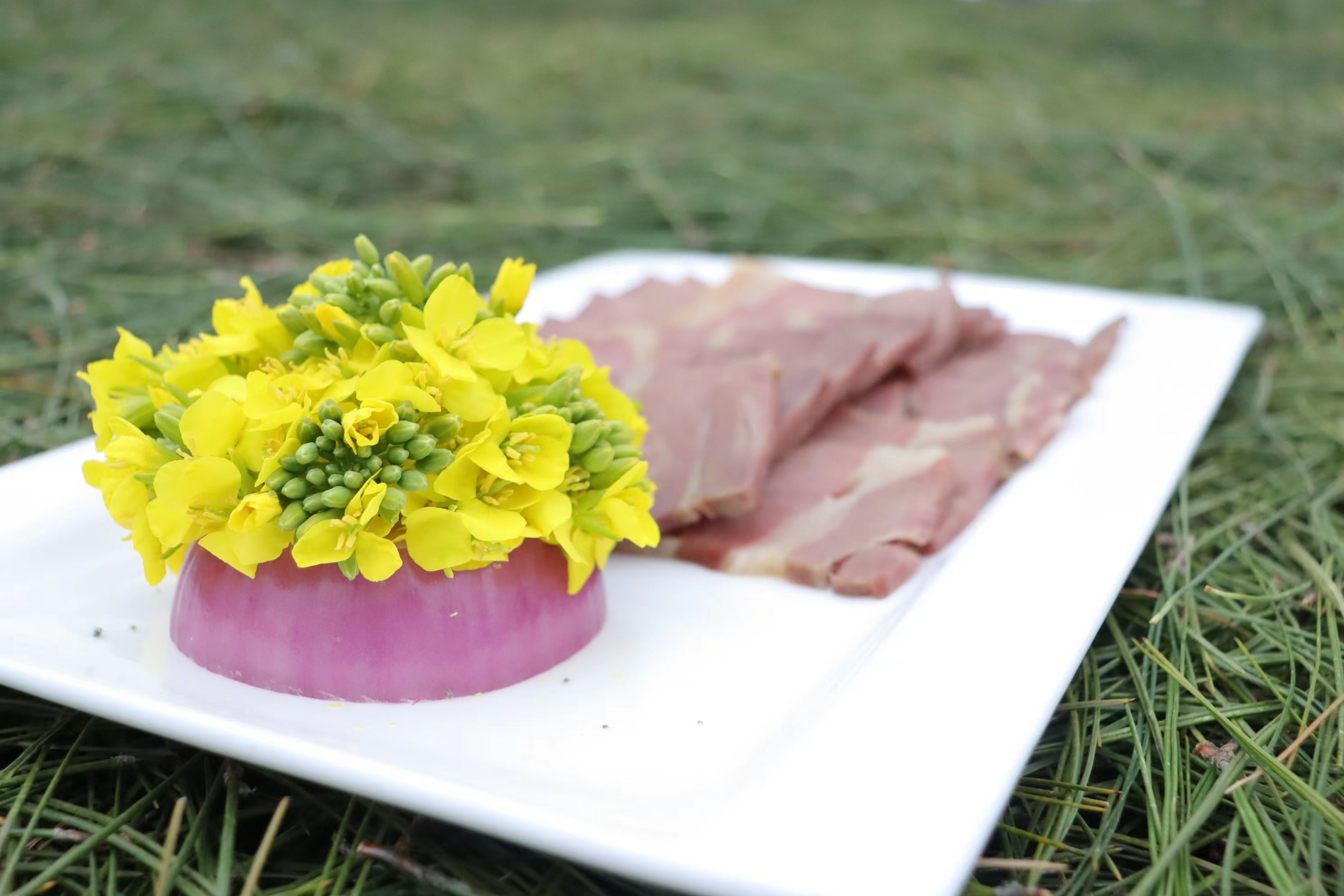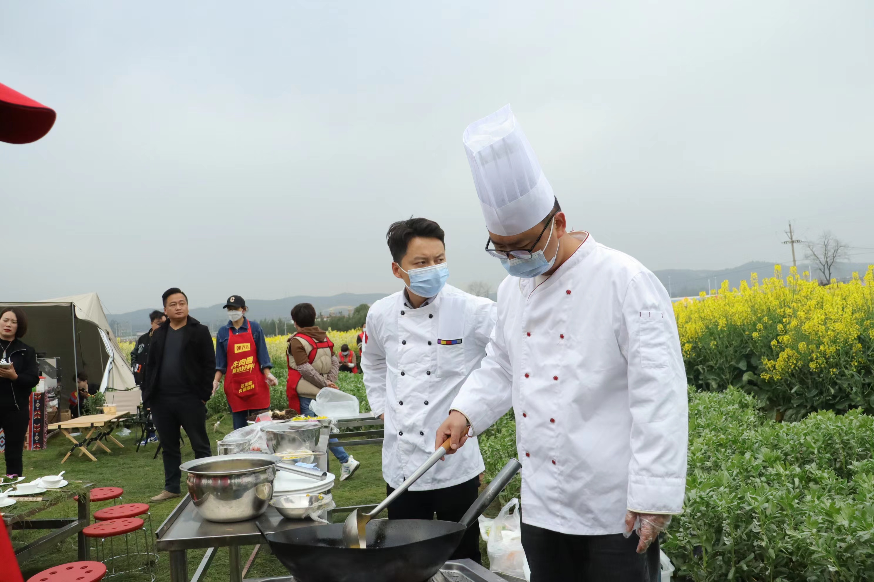 春光明媚,花事正好。在云南省楚雄彝族自治州南华县龙川油菜花节“春日菌鲜花香”美食制作推广现场,争相竞放的油菜花顶着金黄的色彩,伴着微醺的春风,像云锦般洒向热闹的人间。花丛间,随着袅袅升起的炊烟,一道道映衬着春日芳华的佳肴缓缓盛开在花海中:春日羊肚菌、二月刺白花、菌香养生盅、油菜花蛋饼……鲜美的菌香搭配醉人的花氲,烟火和芳菲的骤然碰撞,掀开了春日菌鲜花香的舌尖盛宴。