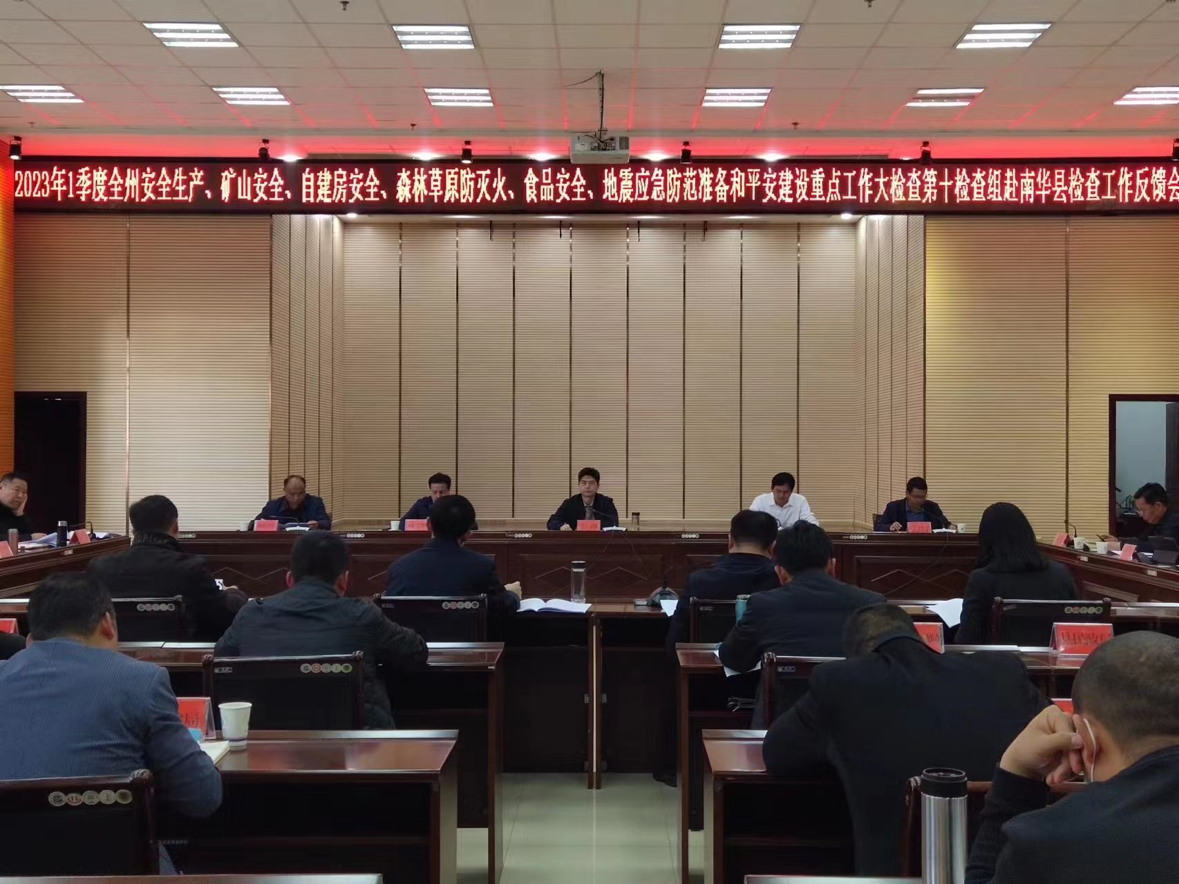 为深入贯彻落实党的二十大精神和习近平总书记关于安全生产的重要论述,贯彻落实全国全省安全生产电视电话会议精神,扎实开展全州安全风险隐患大起底、大排查、大排除和平安建设重点工作督查检查行动,杜绝重特大事故,严控较大事故,减少一般事故,确保全国两会期间和一季度全州安全生产形势持续稳定,3月7日,州人民政府副州长彭玮带领第十检查组赴南华县开展2023年第一季度安全生产、矿山安全、自建房安全、森林草原防灭火、食品安全、地震应急防范准备和平安建设重点工作大检查。