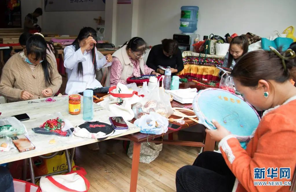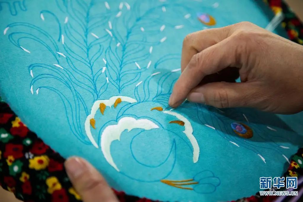 绣工在制作彝绣(3月6日摄)。新华网 刘东摄
