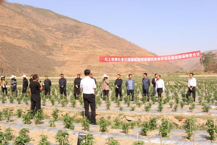 4月6日,南华县礼舍江流域低热河谷现代农业示范区建设现场推进会议在红土坡镇召开,县委副书记王连波,县政协副主席鲁海,挂包红土坡镇的县级部门主要领导,礼舍江流域5个乡镇主要领导全程参加现场会,其他县级有关部门分管领导参加了下午的座谈会。