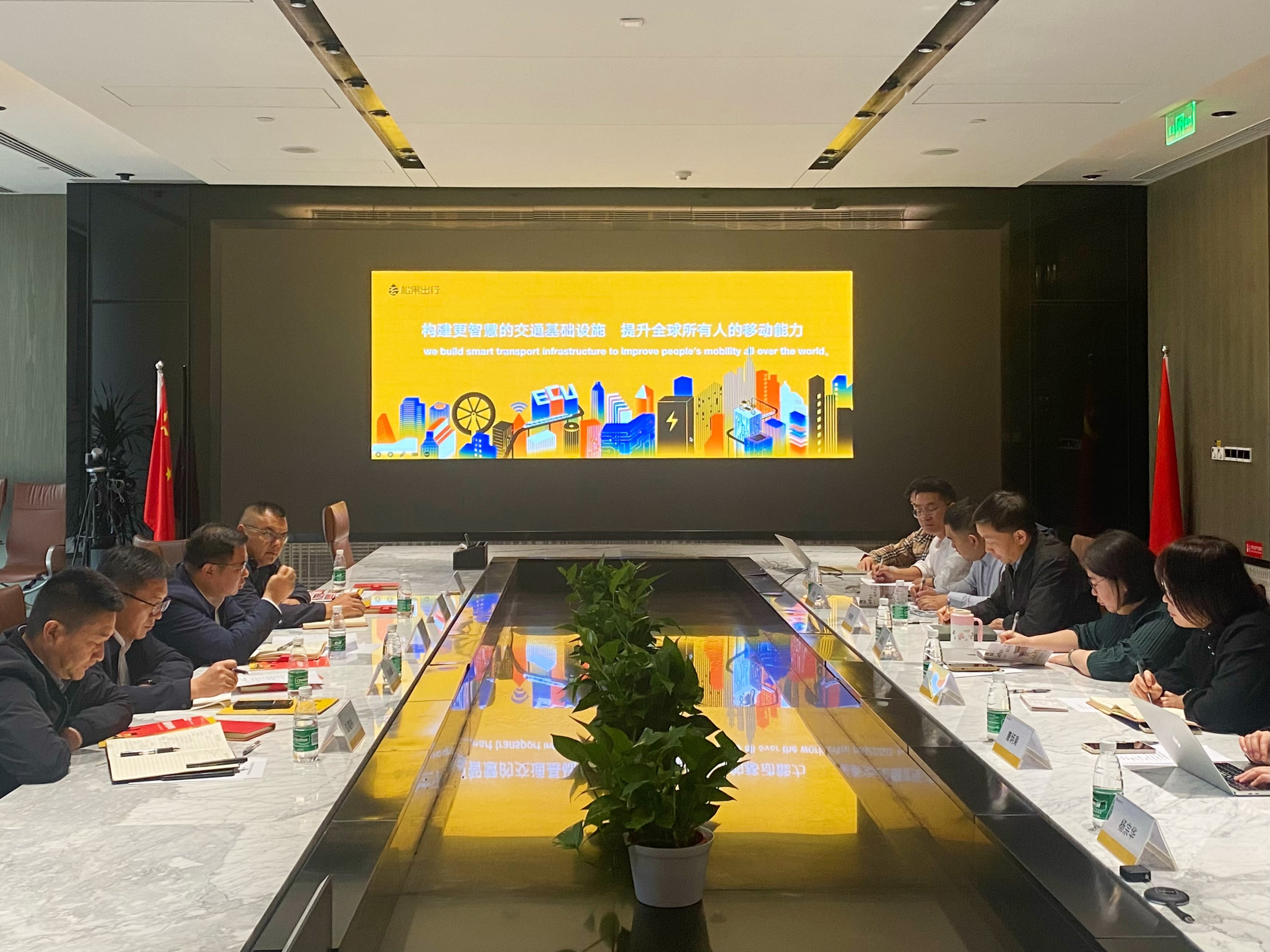 4月10日上午,考察团一行来到北京阿帕科蓝科技有限公司(松果出行),与北京阿帕科蓝科技有限公司党委书记向继贵、首席营销官崔晓琪、副总裁康潇波等深入交流,在听取松果出行全国运营情况和南华县项目投资计划介绍后,考察团重点阐述了龙川江流域综合治理、口袋公园、智慧交通、外资企业市场主体培育等方面的构想。