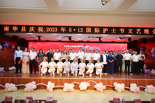 白衣炫五月,天使佑中华。为切实抓好党建引领促进护理事业高质量发展,坚定广大白衣天使“医心向党”信心和决心,共同融合促进全县卫生健康系统党建工作和护理事业,展现白衣天使良好的精神风貌和职业风采,继承和发扬党的优良革命传统,弘扬南丁格尔精神。5月12日,由南华县卫健工委主办、县医共体总医院承办以“发展护士队伍,改善护理服务”为主题,庆祝第112个国际护士节表扬暨文艺晚会在县医共体总院落下帷幕。来自卫生健康系统部分党政领导、干部职工,广大医护人员共460余人欢聚一堂,歌功颂德,载歌载舞,共同庆祝自己的节日国际护士节。县委常委、县委宣传部部长李俊,县人民政府副县长张舫瑞出席晚会,晚会以视频会议形式举行,全县各卫生健康单位设分会场参加晚会。