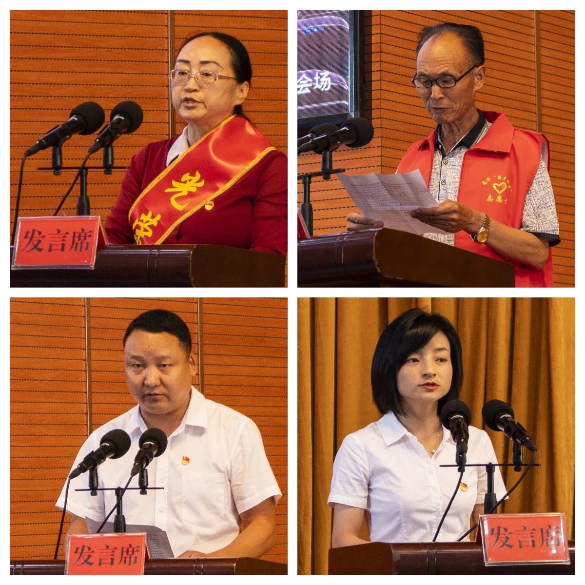 荣退干部代表、县民宗局一级主任科员何青同志,“菌乡银发”志愿服务队队长刘锡海同志,县卫健工委书记、县卫健局局长何育胜同志,年轻干部代表县委组织部一级科员夏丽凤同志作了发言。