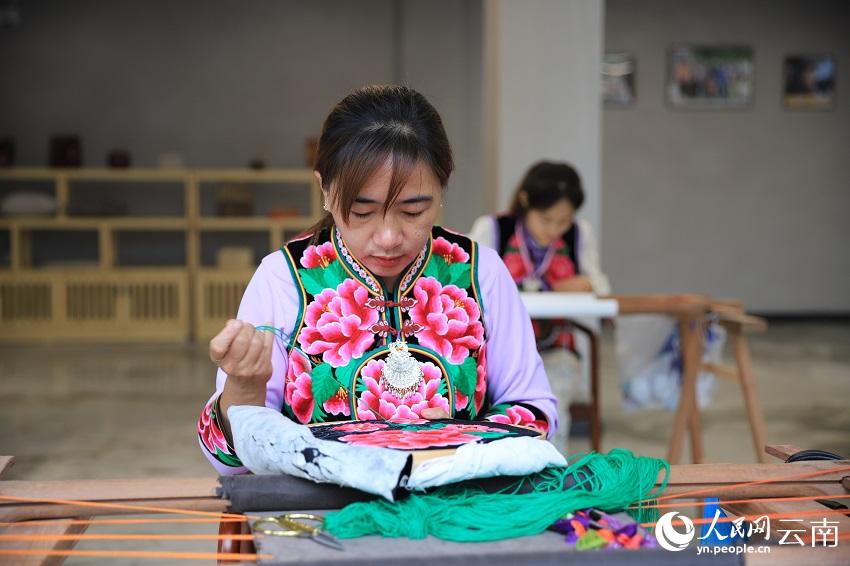 如今,在各级党委政府和东南大学等帮扶单位的助力下,七彩彝绣公司已成长为南华彝绣产业的龙头企业,仅绣工就有2028名,其中109名绣工是残疾人。2022年七彩彝绣销售额达2000余万元,较2018年增长4倍。