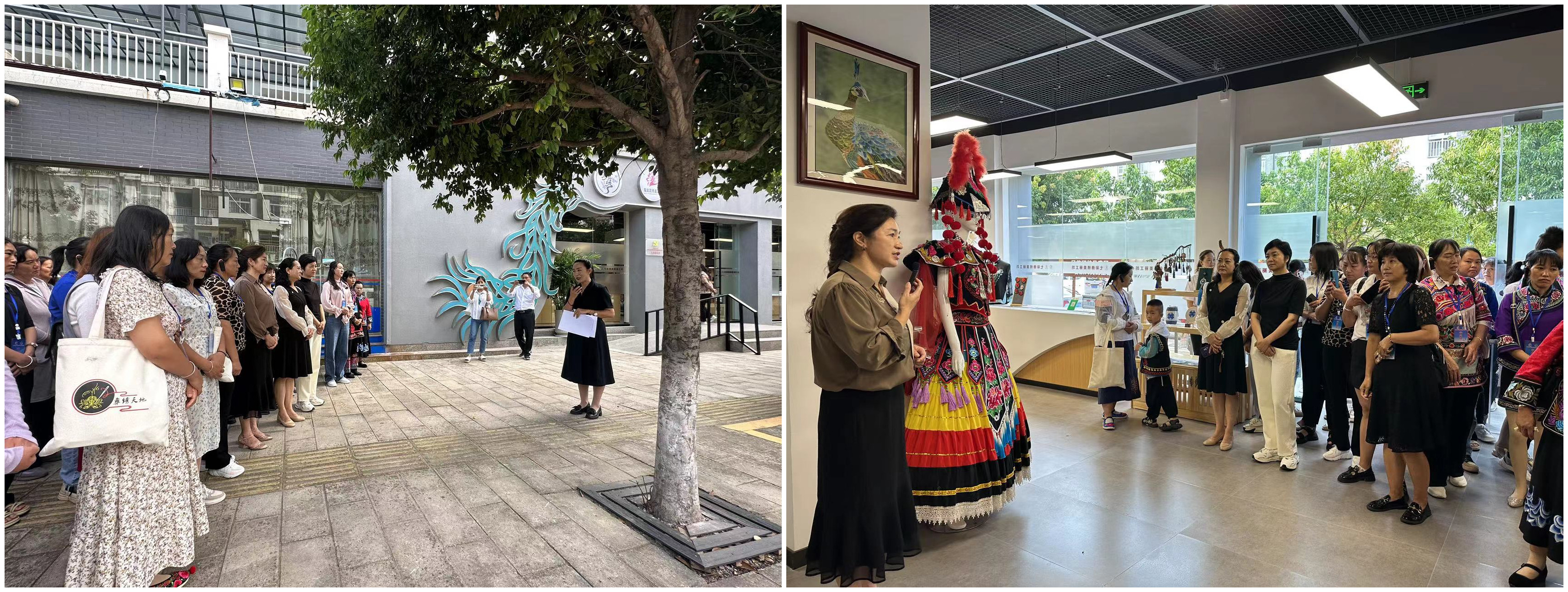 接着,又到南华县“至善彝绣馆”参观,在专业讲解员的引领下对南华县的文创产品、彝绣服饰、南华彝绣典型针法及传统彝绣制作工具进行详细的观摩了解。学员们纷纷表示,这次现场教学不但观赏到南华县优秀的文创产品,还了解了南华县特有的7种彝绣典型针法,开阔了视野、扩宽了思维、学到了技术、提高了本领,对美丽的南华县有了深入的了解和认识,增强了互动,增进了友谊,在下步发展中将通过学到的技艺增收致富,锦绣美好生活和瑰丽人生,用巾帼建功行动描绘民族文化刺绣产业发展美丽新画卷。