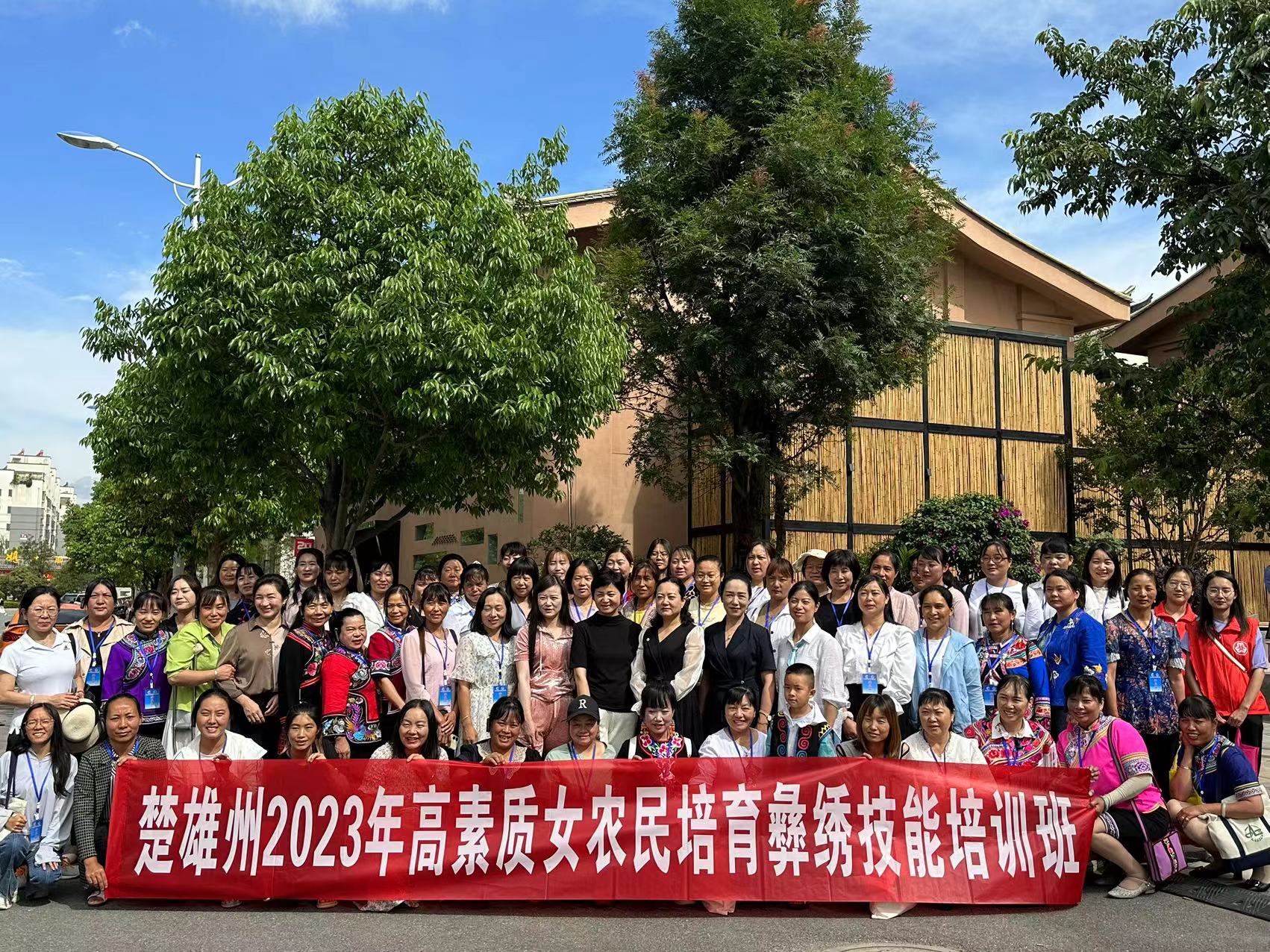 2023年7月27日来自楚雄彝族自治州10个县市的70余名“楚雄州2023年高素质女农民培育彝绣技能培训班”学员和老师到南华县开展现场教学。南华县妇联对全州各县市女性彝绣致富带头人学员的到来表示热烈的欢迎,在介绍全县基本县情和彝族产业发展现状的同时希望大家多了解南华、走进南华,并共同架起促进南华县及楚雄彝族自治州彝绣产业发展的桥梁。