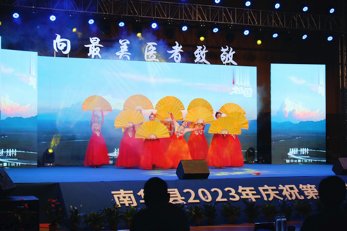 20时许,县人民政府副县长张舫瑞致词,向全县各级各部门和全体医务工作者为我县卫生健康事业发展作出的积极贡献表示衷心的感谢,向全体医务工作者和默默支持医务工作者的家人们表示节日的问候。接着晚会以南华县医共体总医院医师代表和大家一起重温《中国医师宣言》作为序篇开场,县卫生健康局《医路走来、感谢有你—“南华最美医生”》先进事迹短视频,县人民医院舞蹈《人民的医者》,县中医医院《中医经典》诵读,县医保局舞蹈《辉煌中国梦》,县妇计中心舞蹈《卡路里》,县疾控中心舞蹈《入画江南》,县中医医院情景剧《中医咏传承》,县卫健局民族舞《星星之火》,县中医医院、县红十字会《八段锦养生功法》表演,南华骨伤科医院古典舞《万疆》,龙川镇卫生院舞蹈《最美是你》,为现场观众带来一场暖心而富有激情的视听盛宴,赢得大家的阵阵掌声。最后,在南华慈安医院当代舞《芳华》中落幕。