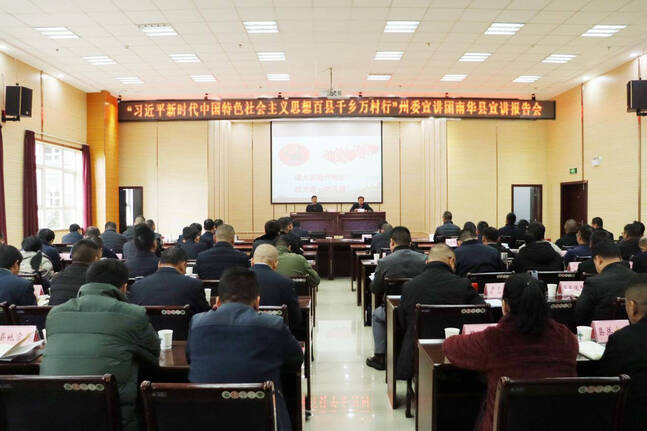 12月4日,“习近平新时代中国特色社会主义思想百县千乡万村行”州委宣讲团南华县宣讲报告会在县公务中心举行。