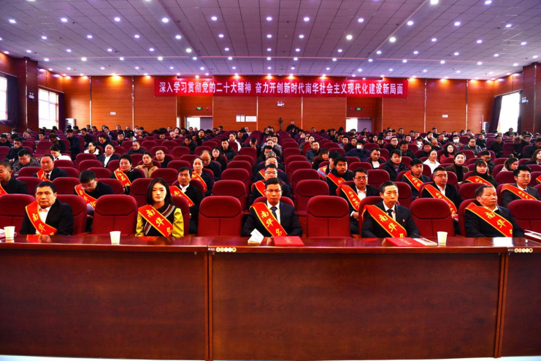 县处级领导、县级各部门(单位)、省州驻南华单位主要领导,10个乡镇党委书记、组织委员,部分县级各类人才代表等共260余人参加会议。