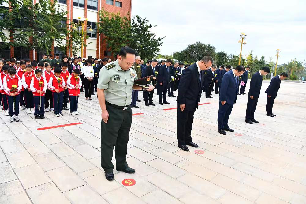 县委常委,县人大常委会、县人民政府、县政协领导班子成员,县人武部部长,县人民法院院长,县检察院检察长,县级各部门、省州驻南华单位主要负责人等参加敬献花篮仪式。