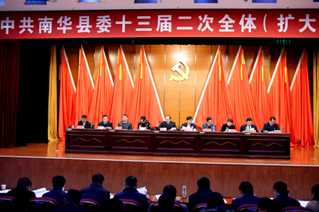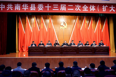 1月9日,中国共产党南华县第十三届委员会召开第二次全体(扩大)会议,深入学习贯彻党的十八届六中全会、中央经济工作会议、中央农村工作会议、习近平总书记系列重要讲话以及省、州、县党代会精神,全面总结2016年工作,安排部署2017年工作任务,审议《中共南华县委关于贯彻落实党的十八届六中全会精神深入推进全面从严治党的意见》,听取县委常委会2016年党的建设工作专题报告,动员全县各级党组织和广大党员干部群众坚定信心、稳中求进,有力开创南华跨越发展新局面。