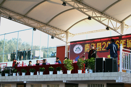 何文育主持开幕式。开幕式结束后,还进行了文艺展演,一个个精彩的文艺节目,获得了现场观众热烈的掌声,为运动会的开幕营造了热烈、和谐的氛围。