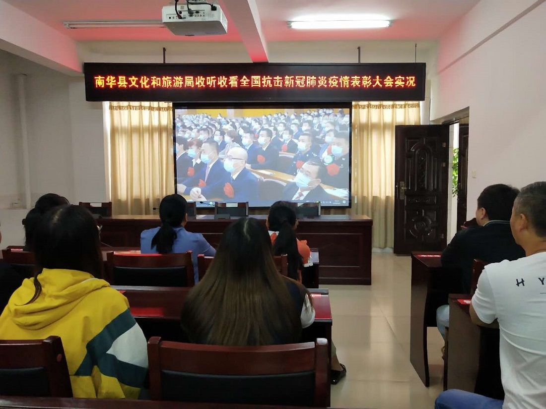 南华县文化和旅游局组织全体党员、干部职工集中收听收看大会实况,认真聆听、学习领会习近平总书记在表彰大会上发表的重要讲话精神。