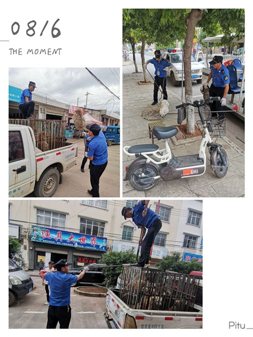 抽调10名执法人员成立流浪犬整治行动专项小组,配备专用车辆及必要工具、设备,集中力量对城区主街道、广场、公园内流浪犬进行拉网式排查和处置,对市民举报的流浪狗进行集中捕捉、管理、饲养。8月份以来,共捕捉流浪犬11只,劝导养犬居民120户,规范街头养犬行为56起。