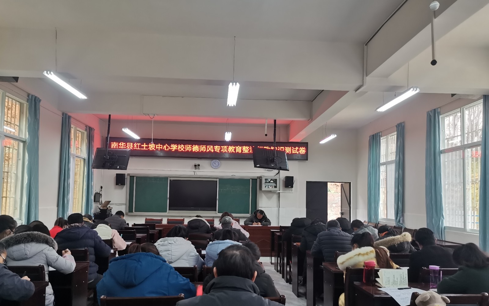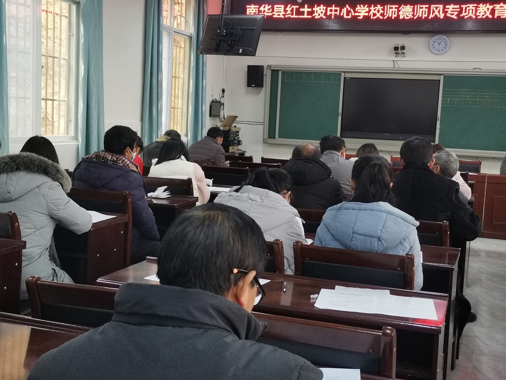 为深入推进我校师德师风专项教育整治工作,切实提高学习教育效果,1月19日下午,红土坡中心学校组织全体教职工举行师德师风专项教育整治学习测试活动。