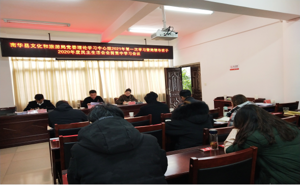 1月14日至15日,南华县文化和旅游局党委理论学习中心组举行2021年第一次学习暨局领导班子2020年度民主生活会会前集中学习。主要任务是:深入学习贯彻习近平新时代中国特色社会主义思想和习近平总书记考察云南重要讲话精神,认真贯彻落实党的十九届五中全会、中央经济工作会议和中央农村工作会议精神及省州县党委全会、省州县经济工作会议精神,为高质量开好局领导班子2020年度民主生活会做好充分准备,确保“十四五”开局良好。