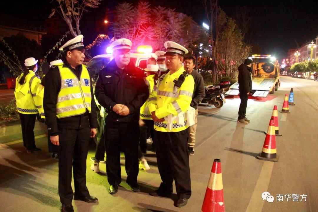1月4日至5日,南华县公安局交警大队组织全体民警、辅警深入辖区主要路段持续开展酒驾醉驾、超员超载、涉牌涉证等交通违法专项整治行动。省公安厅交警总队副总队长黎晓波、州公安局交警支队支队长闫文一行3人深入现场督导检查,看望慰问一线执勤公安民警辅警。