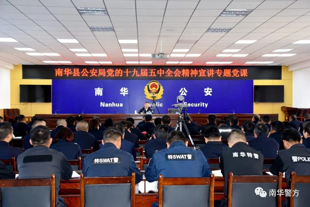 在宣讲报告中,邱文华以习近平总书记在党的十九届五中全会上的重要讲话精神和全会通过的《中共中央关于制定国民经济和社会发展第十四个五年规划和二〇三五年远景目标的建议》为主要内容,从学习全会精神要做到“两个把握好”:把握好五中全会是全局性、历史性的重要会议,在党的发展史、中华民族伟大复兴史、中国现代化建设史上具有里程碑意义;深刻认识五中全会的重要意义体现在“10个新”:新发展成就、新发展背景、新发展阶段、新发展目标、新发展指南、新发展理念、新发展格局、新发展基石、新发展任务、新发展保证两个方面,全面准确阐释、解读全会精神,要求全县公安机关要把宣讲报告与抓好当前及今后公安工作有机结合,用党的十九届五中全会精神指引未来发展方向,迅速掀起学习贯彻党的十九届五中全会热潮,切实增强奋战新征程的责任感和使命感,认真谋划好2021年的公安工作,加强基层基础建设,推进公安智能化建设,着力锻造“四个铁一般”的南华公安铁军。