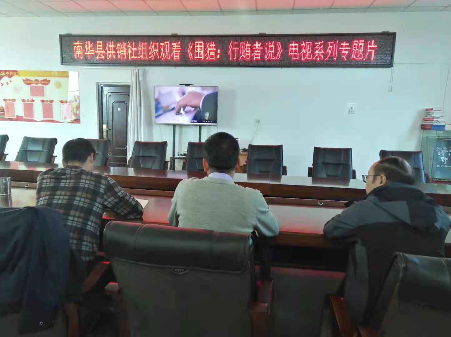 2020年12月2日,南华县供销社组织领导班子、干部职工集中观看警示教育电视系列专题片《围猎:行贿者说》。