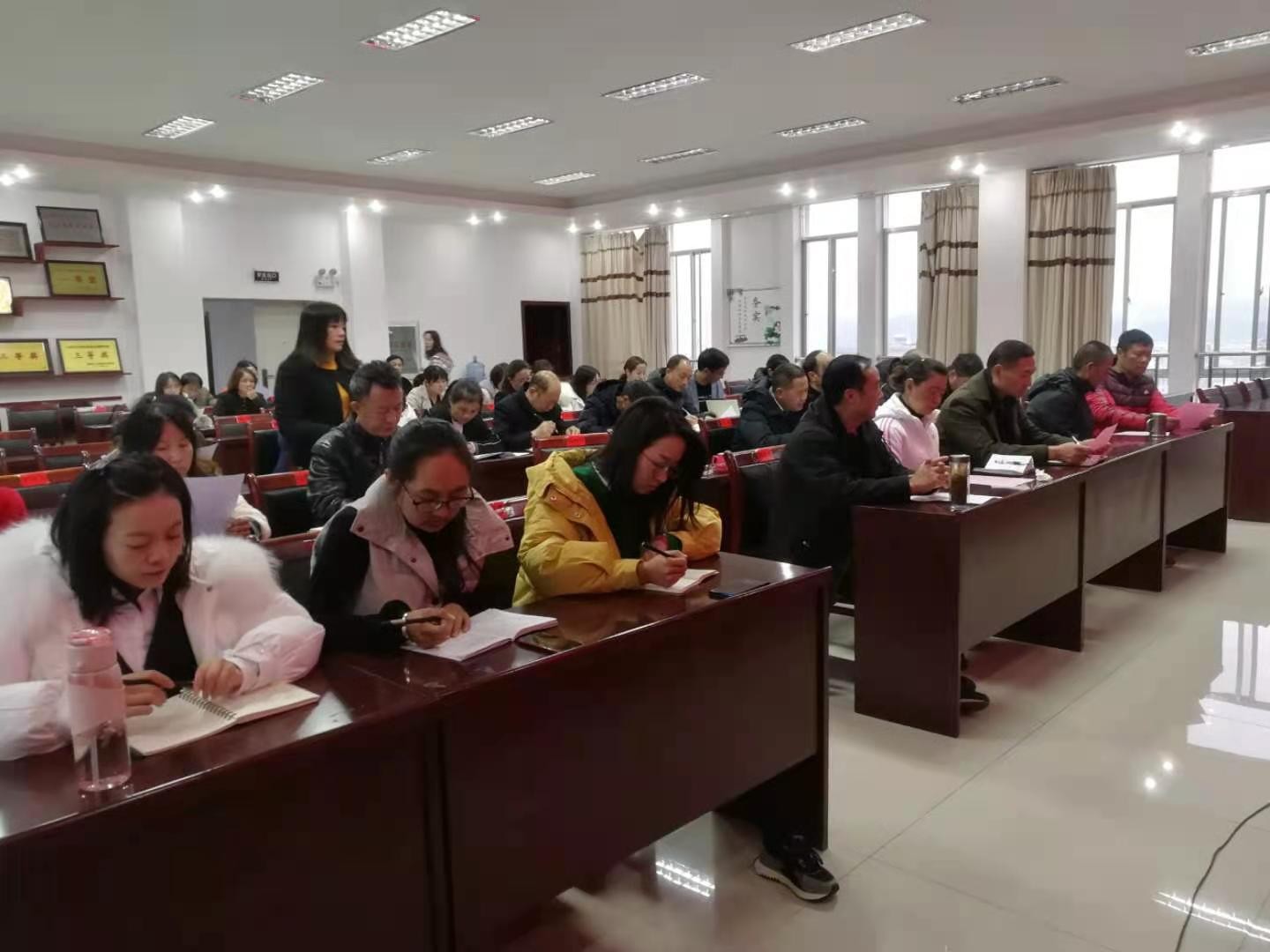 近日,南华县人社局党组书记、局长张问高主持召开理论学习中心组2020年第八次集中学习会议,专题传达学习习近平总书记在党的十九届五中全会上的重要讲话和全会精神。为确保学习取得实效,会议邀请县委党校高级讲师罗成亮就如何学习贯彻好党的十九届五中全会精神作专题辅导。全局57名干部职工参加专题辅导。