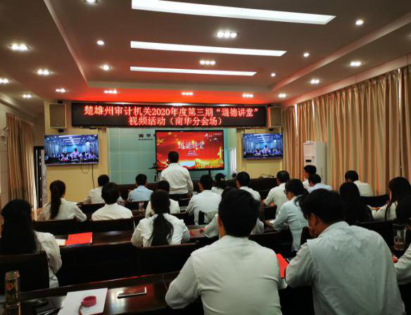 楚雄州审计机关2020年第三期道德讲堂于10月29日上午举行,本期道德讲堂以“家风家教”为主题,由楚雄州审计局主办,姚安、南华、禄丰县审计局协办。本次活动一共六个环节:唱歌曲、讲故事、学模范、诵经典、看短片、谈感悟。在学模范环节,我局以经责办主任陈丽华同志《全国最美家庭》为素材,向全州审计干部展示了她注重家庭教育,热心公益的先进事迹。在谈感悟环节,局党组书记、局长欧阳文经同志从三个方面向全州审计同仁交流了自己的感悟,其中感受最深的就是“家风是做出来的,要落到实处,而不是空凭嘴说,良好的家风建设不仅关系小家的稳定,还关系着整个社会的和谐”。