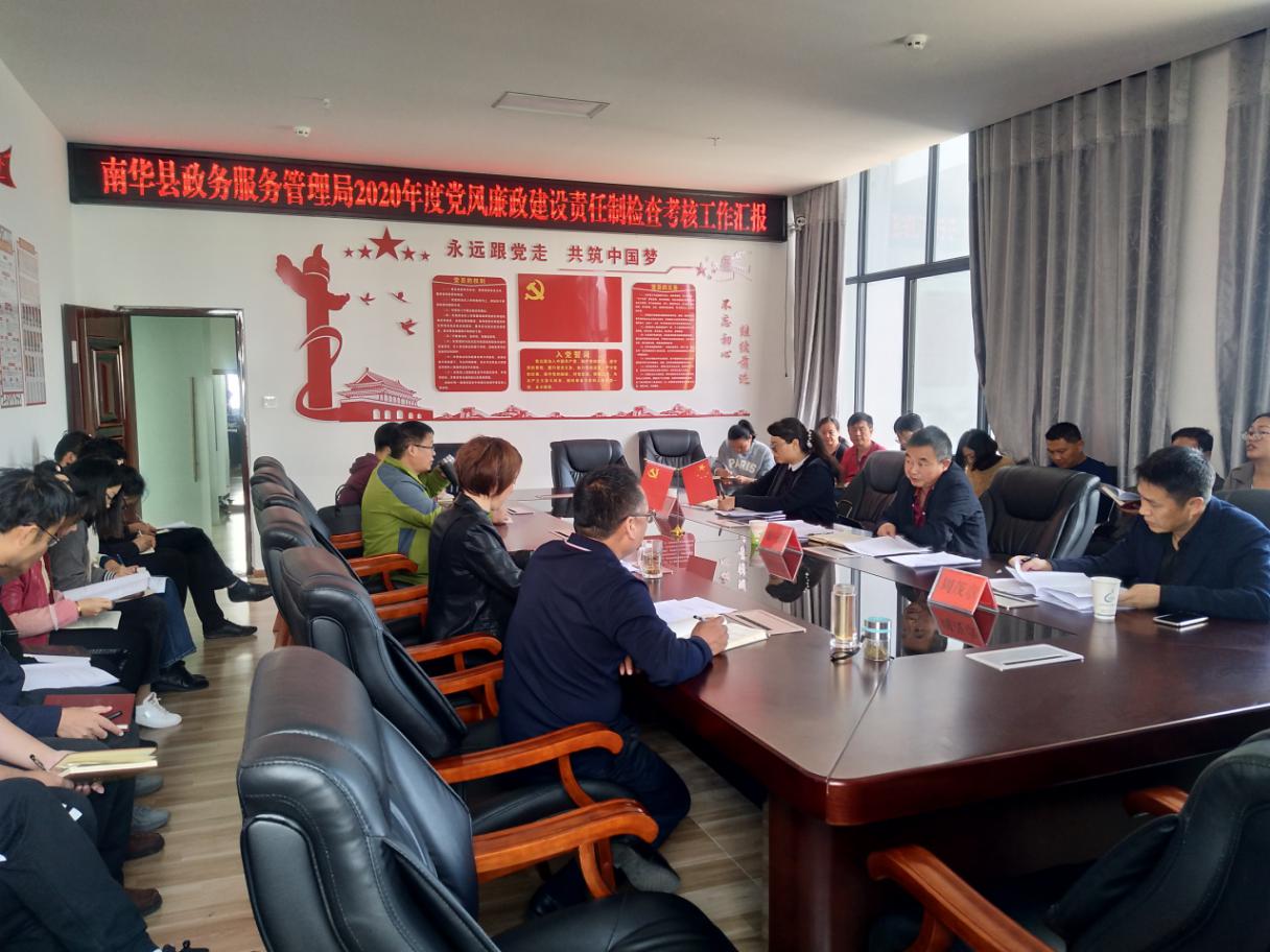 10月27日,县党风廉政建设责任制检查考核组第九组组长施应锋带队对南华县政务服务管理局2020年度落实党风廉政建设责任制情况进行检查考核。县政务服务局党组成员、副局长李秀梅主持考核汇报会,局全体干部职工参加会议。