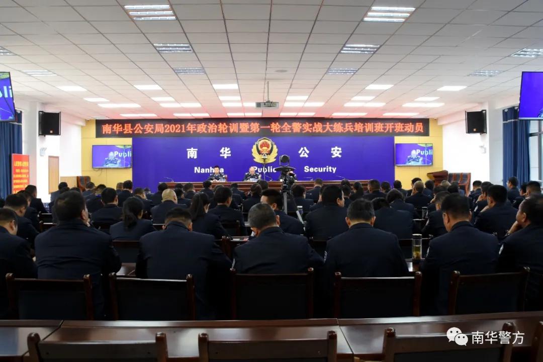 2月24日至26日, 南华县公安局举办全县公安机关2021年政治轮训暨第一期全警实战大练兵培训班,深入学习贯彻习近平新时代中国特色社会主义思想, 党的十九大精神和党的十九届二中、三中、四中、五中全会精神,习近平总书记考察云南重要讲话精神和重要训词精神,加强思想淬炼、政治历练、实践锻炼、专业训练,全面提高队伍专业素养和实战本领。