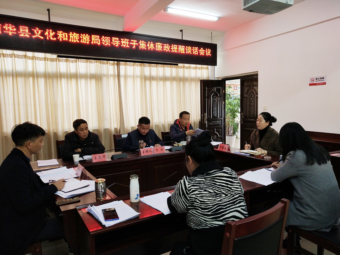 为进一步压实管党治党政治责任和工作责任,推进全面从严治党向纵深发展,1月29日,县纪委县监委派驻县委宣传部纪检组组长王兆登同志对县文化和旅游局领导班子成员开展集体廉政提醒谈话。