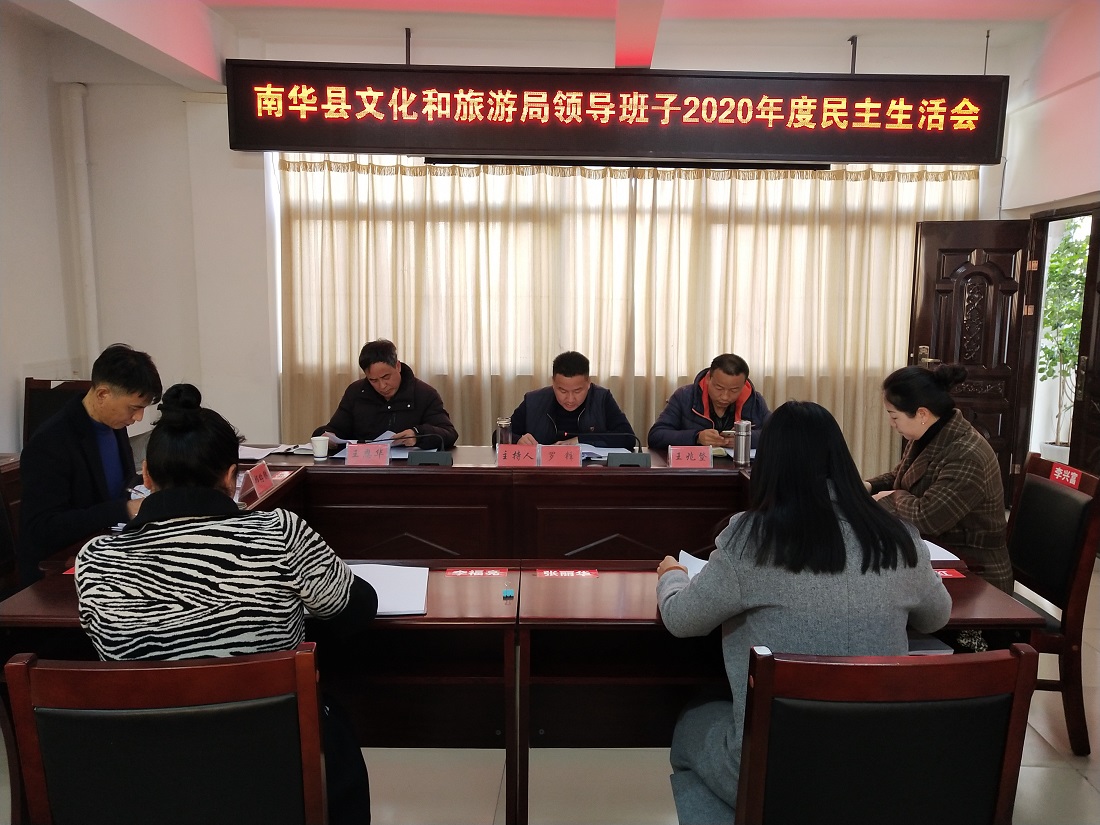 1月29日,南华县文化和旅游局领导班子召开2020年度民主生活会。会议紧紧围绕主题,结合思想和工作实际,进行深刻的党性分析,深入开展班子和个人对照检查,开展批评和自我批评,切实加强领导班子自身建设。