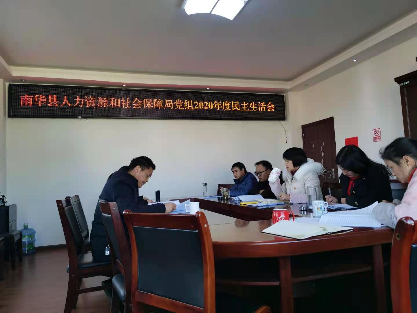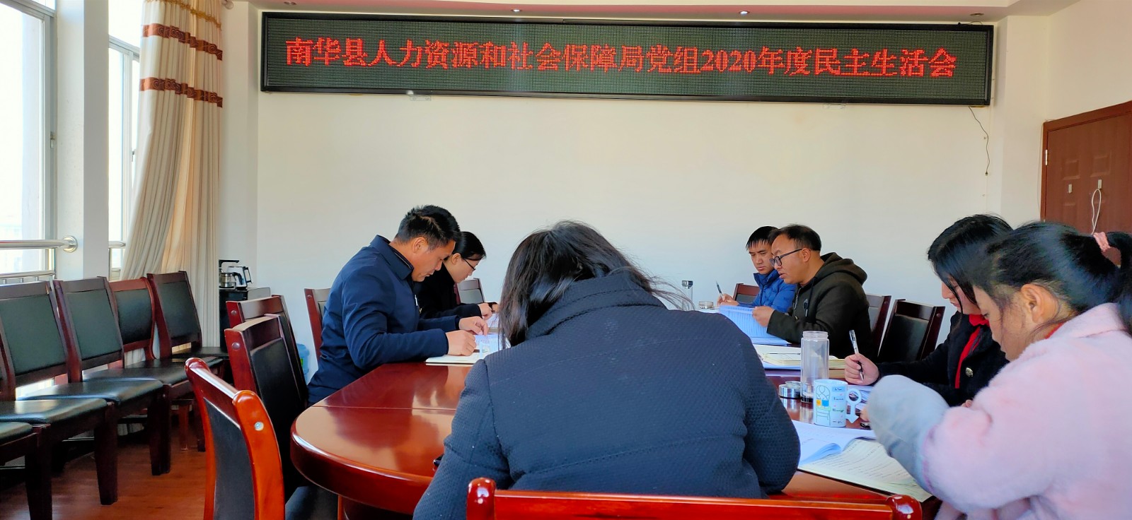 1月29日上午,南华县人社局召开2020年度科级领导班子民主生活会。驻组织部纪检组组长何倩到会指导,局党组成员(班子成员)参加会议,局办公室和总支办负责人列席会议。