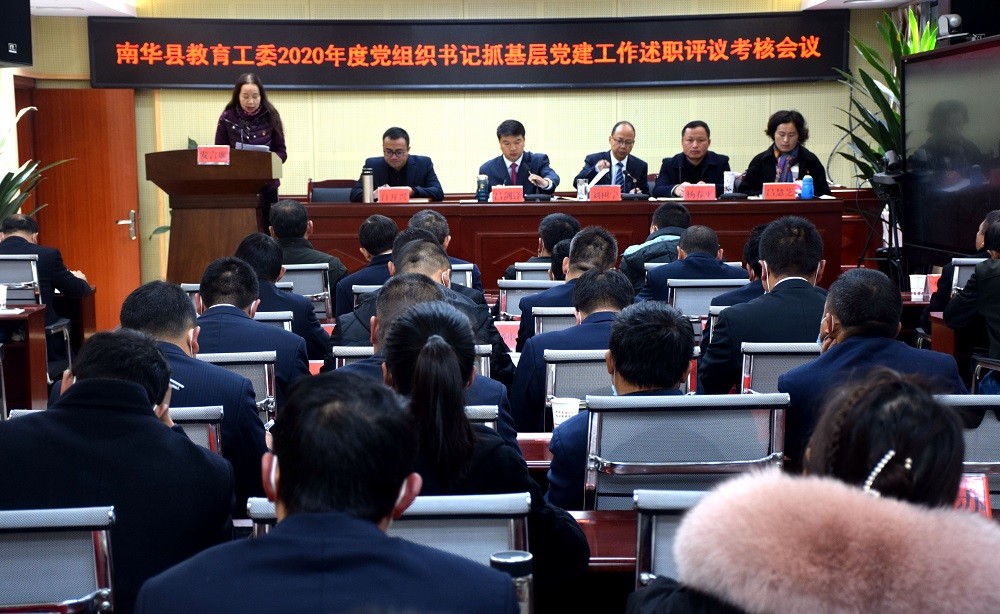 1月25日,南华县教育工委召开2020年度党组织书记抓基层党建述职评议考核会议。县教育工委、县教育体育局党政班子成员,“两代表一委员”和各学校党组织书记等60余人参加会议。